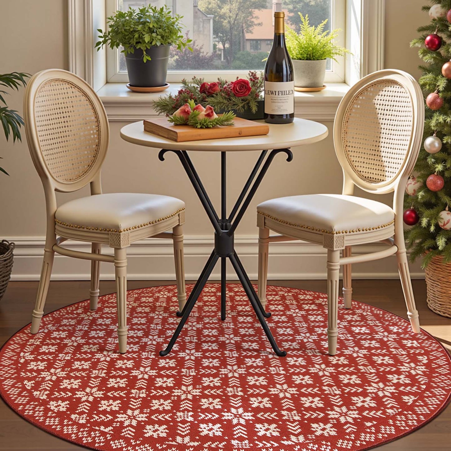 Bring cozy Scandinavian charm into your home with the Nordic Knit-Inspired Holiday Rug.